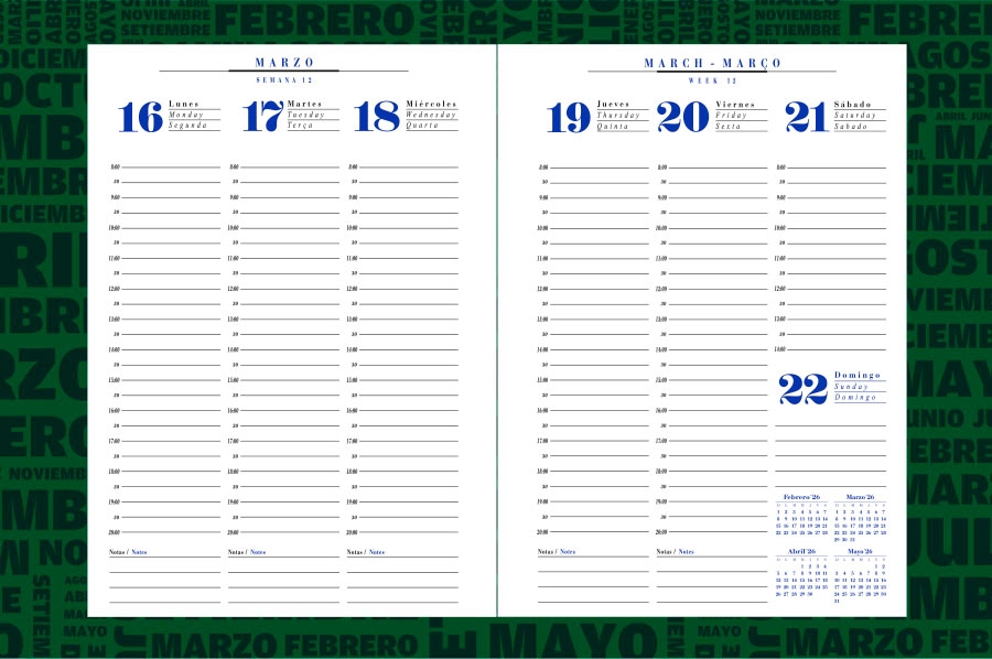 Agenda semana a la vista, impresa a 2 tintas.